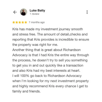 Kris Richardson is an experienced buyer’s advocate who has spent years helping professionals and business owners make smarter property decisions.